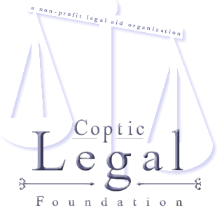 Welcome to Coptic Legal Foundation's web site. Coptic Legal Foundation is a non-profit legal services organization established to provide legal assistance to those who cannot otherwise afford it. This site is intended to help you find legal assistance, learn about the law, and represent yourself in some legal matters. We recommend viewing this site with Microsoft Internet Explorer 5.0 and higher. This site does not provide legal advice. |